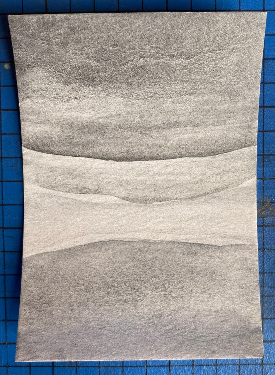 The materials feel simple and precious. Sheets of thick paper are adhered together into a block to keep them flat until the painting is declared finished or, in my case, ready for recycling. The pigments are rich and delightful, sometimes drying with texture and sheen, other times even and thin. After years of drawing with very small blue and graphite leads, and cutting erasers into thin slices for smudging or removing with great care, working with this bright, watery flow is a serious growth opportunity.
