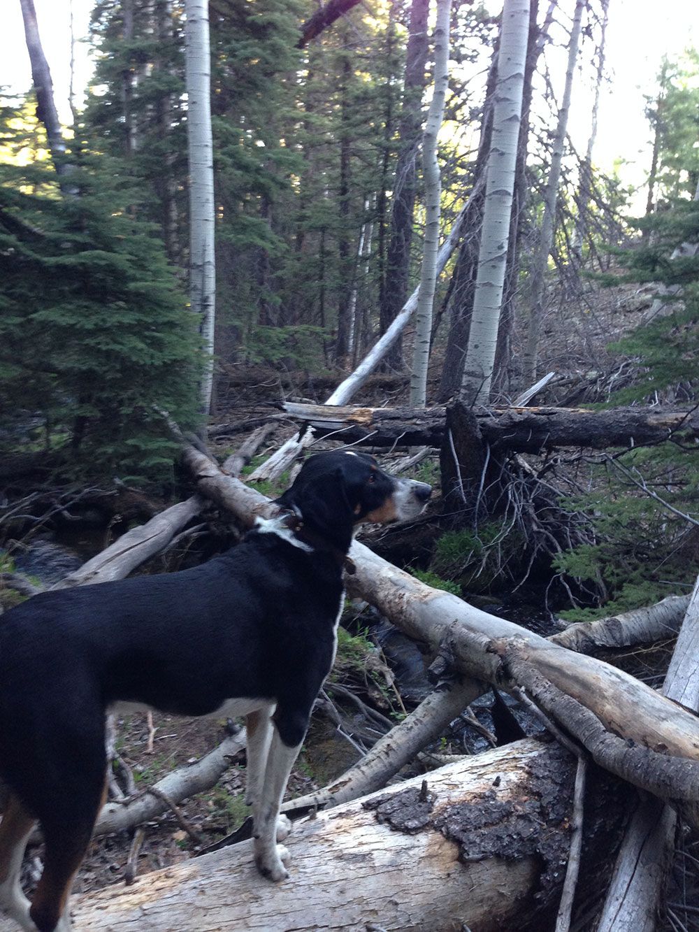 We took a lovely hike up to Blind Lake (sources say there are 5-pound splake in that lake! What is a splake? It’s the offspring of a male brook trout and a female lake trout. Now you know.). We did not catch fish at Blind Lake, though a fish was seen… we are clueless when it comes to lake fishing, especially when they aren’t rising. I used the time to practice casting poppers, and the dogs got a chance to hang out in a small snowbank in the shade.