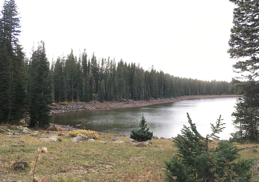 But now what? We were a few hours drive up on a mesa and it was late afternoon. We looked at the map and found a road that look “improved” and might eventually lead us off the mesa. It passed lakes and creeks and campgrounds, should we not find any better options. The goal was to find a camping spot that was at least a B, and we eventually pulled into a nice flat spot above a lake, about 10,000 feet. We had a couple hours of occasional sun to set up camp and maybe catch a fish. In the middle of the night the sky was clear and it was not nearly as cold as we thought it might be. Success!